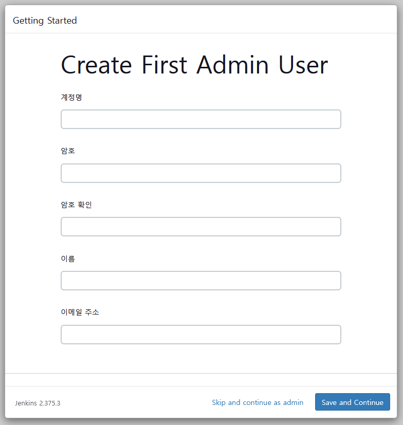 브라우저로 접속하면 초기 비밀번호를 입력하라고 하는데, 해당 경로의 파일을 vi 로 열어보면 비밀번호가 들어있다. 그 비밀번호를 복사해서 브라우저에 입력하면 통과된다. 그다음 일반적인 설정을 선택하면 잠시 플러그인 설치를 시작한다. 그후 로그인 계정, 비밀번호, 이름을 입력한다.