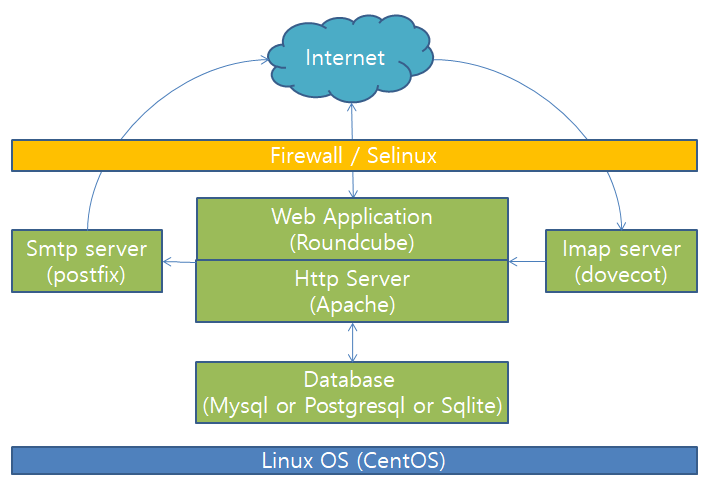 Roundcube는 사용자 UI를 제공하고 Smtp/Imap을 활용하게 해주는 프로그램이다.