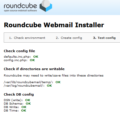 Roundcube 브라우저 설치 화면