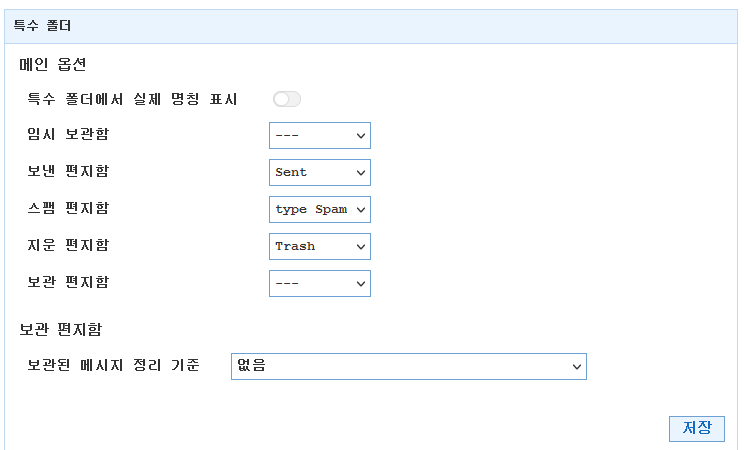설정 > 특수 폴더 > 스팸 편지함에 type Spam 을 선택 > 저장