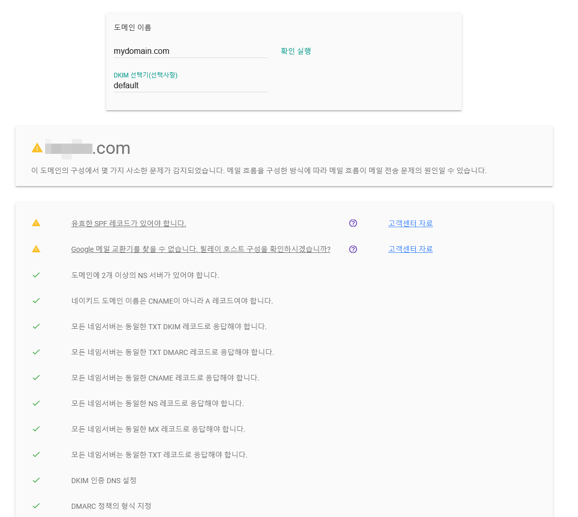 DKIM 인증 DNS 설정 V 통과 되었다.